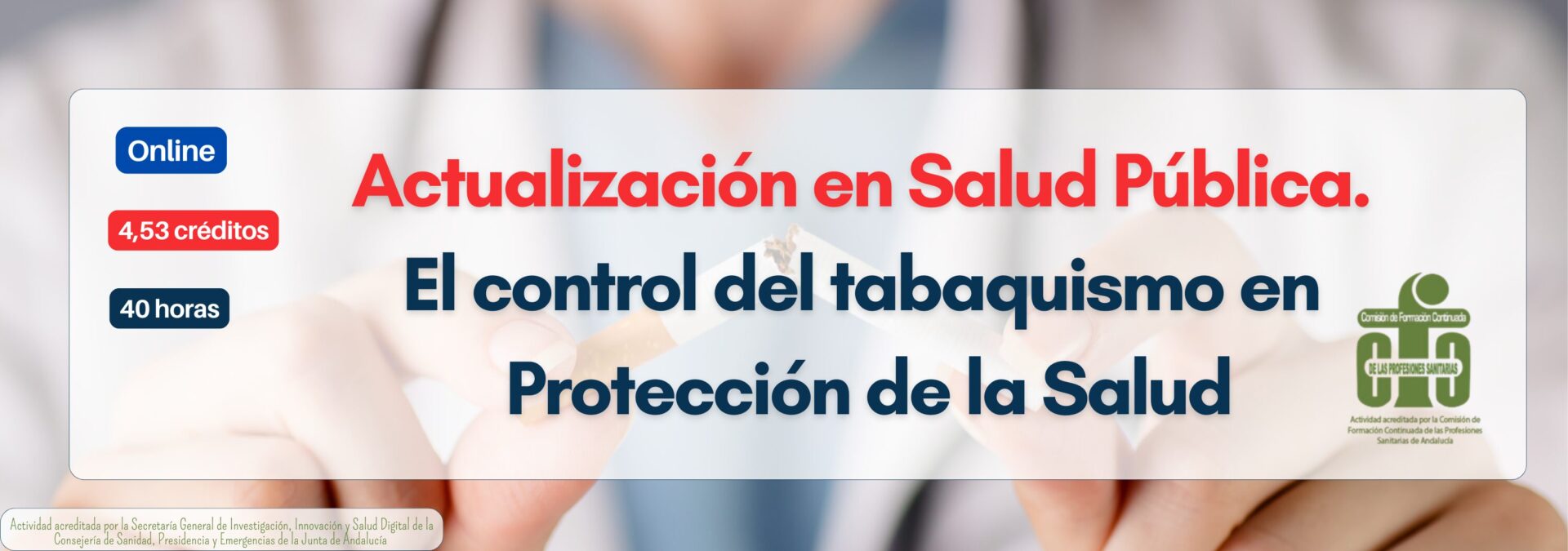 Esta actividad formativa está acreditada por la Secretaría General de Investigación, Innovación y Salud Digital de la Consejería de Sanidad de la Junta de Andalucía, con 4,53 créditos de formación continuada (Expediente nº 1190/2026).